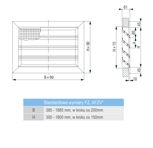 Czerpnia / wyrzutnia aluminiowa, jeden rząd stałych, poziomych lamel. Rekomendowana do stosowania w instalacjach wentylacyjnych nisko- i średniociśnieniowych.