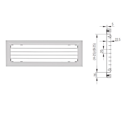Kratka stalowa, jeden rząd poziomych, nastawnych lamel. Rekomendowana do stosowania w instalacjach wentylacyjnych nisko- i średniociśnieniowych.