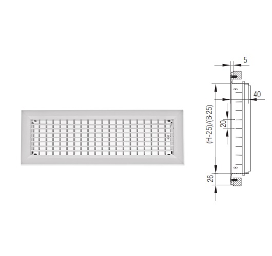 Kratka stalowa z podwójnym rzędem nastawnych lamel, frontowe lamele poziome, tylne pionowe. Rekomendowana do stosowania w instalacjach wentylacyjnych nisko- i średniociśnieniowych.