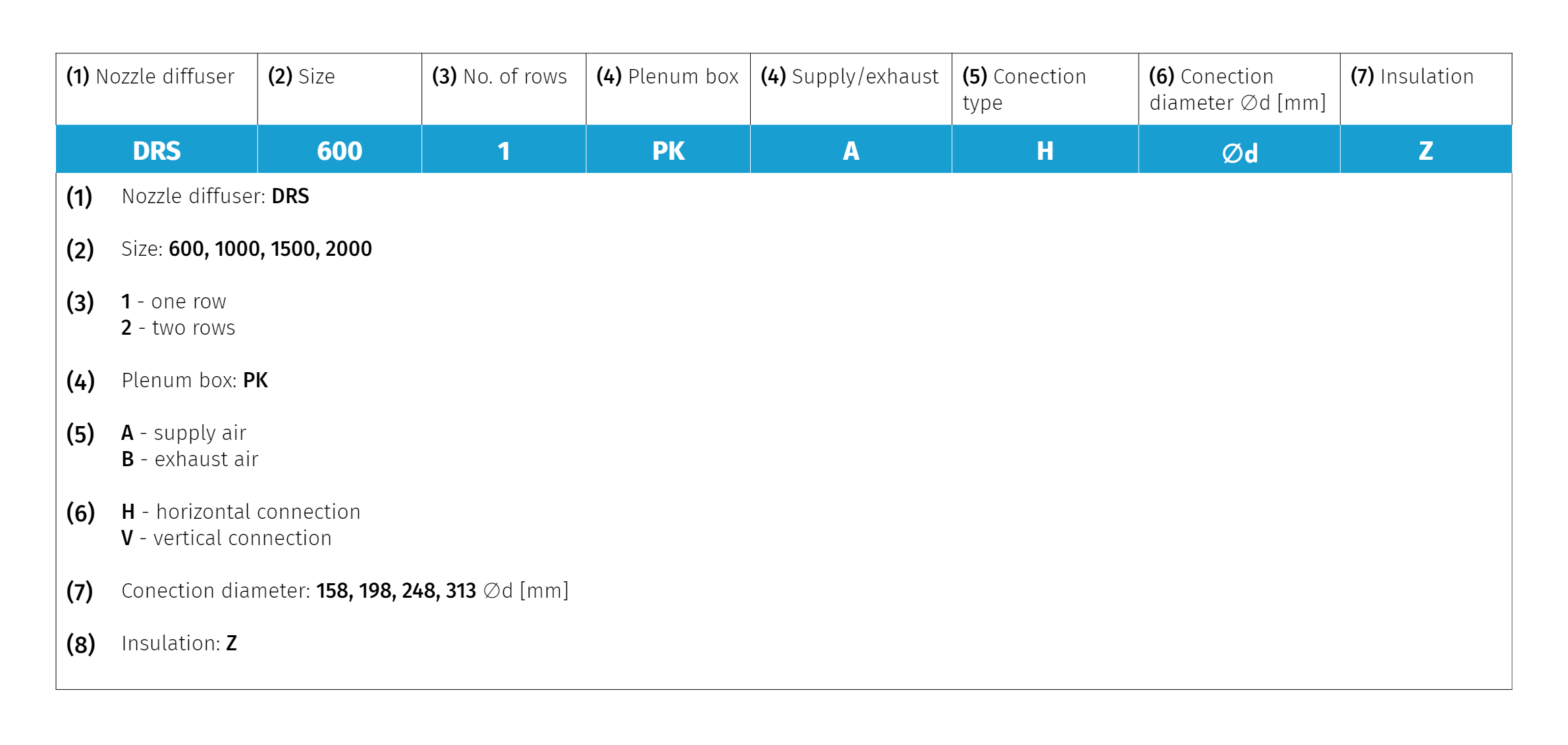 Nawiewnik dyszowy DRS dostosowany do pracy ze stałym lub zmiennym przepływem powietrza. Przeznaczony do montażu w pomieszczeniach do 4m wysokości.