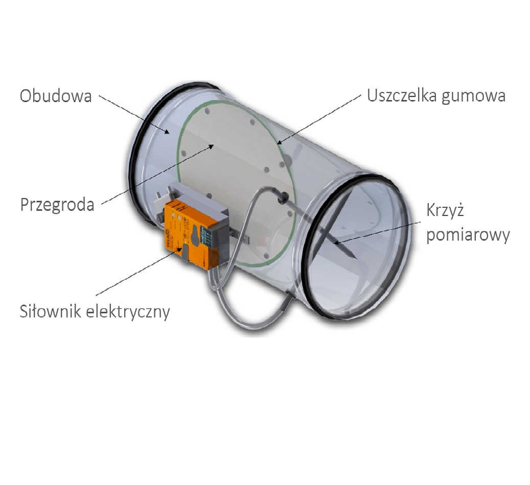 Obudowa regulatora wykonana jest z wysokiej jakości blachy stalowej. Układ pomiarowy wykonany jest z aluminiowych rurek spiętrzających i króćców odbioru ciśnienia, co zapewnia wiarygodny pomiar ilości przepływającego powietrza.