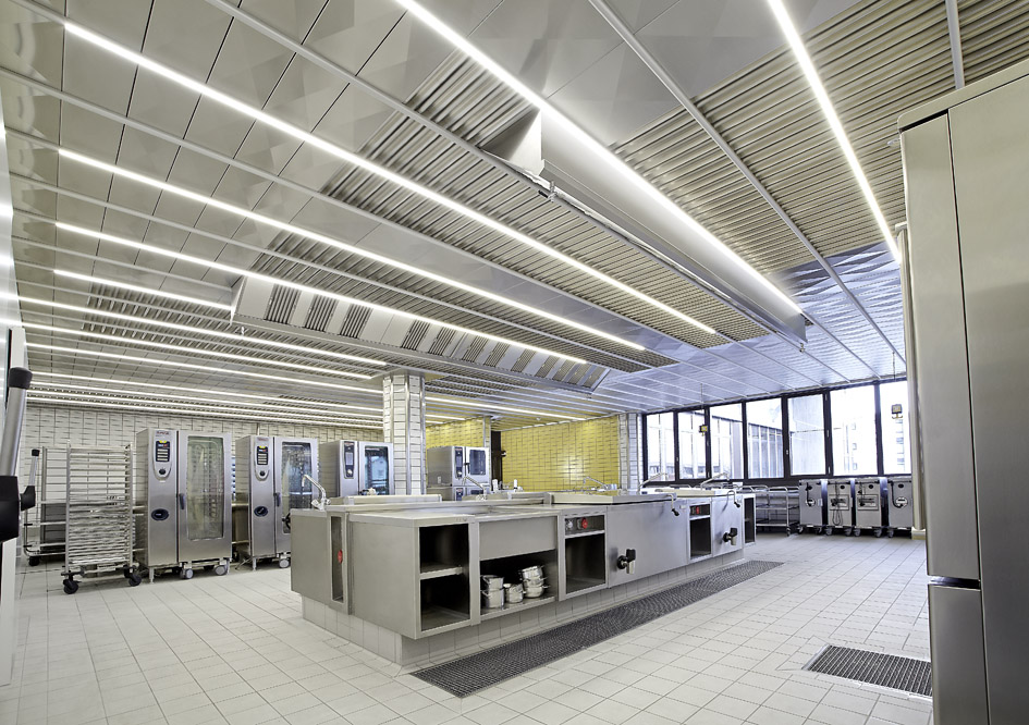 Dzięki nawiewie powietrza do lampy oświetleniowej w strefie wyciągowej, oprawa pozostaje dłużej czysta. Ponadto lampy są chłodzone i mają dłuższą żywotność