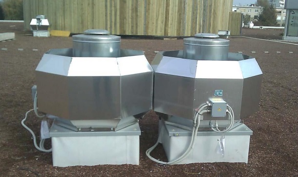 Wentylatory dachowe SVK2 z pionowym wyrzutem powietrza i klasycznym elektrycznym silnikiem trójfazowym ICE zaprojektowano do wentylacji budynków przemysłowych i komercyjnych, okapów kuchennych, sufitów kuchennych do wyciągania powietrza o zwiększonej wilgotności i zanieczyszczeniu. Przepływ strugi powietrza poza silnikiem wentylatora. Maksymalna temperatura 120°C, a przepływ powietrza w zakresie do 50.000 m3/h i sprężu do 2000 Pa.